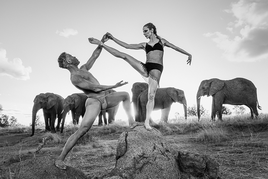 ANIMAN, piattaforma dedicata alla fotografia d’arte e a iniziative filantropiche con uno sguardo sensibile rivolto al mondo animale e naturale, presenta dal 10 ottobre al 6 dicembre 2025 a Fabbrica Eos a Milano, la mostra Dancing with Nature, progetto ideato e realizzato dal fotografo Ruggero Rosfer e a cura di Maria Vittoria Baravelli. Ventuno immagini mozzafiato di Ruggero Rosfer, rigorosamente in bianco e nero, in cui un branco di sei elefanti e due ballerini di danza classica dialogano in uno scenario incontaminato in Sudafrica, a nord di Johannesburg.